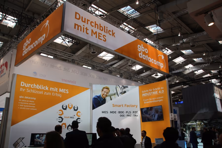 digitization as the driver of this year's trade fair.Augsburg, 10.04.2019 “The quality of leads was consistently very high. Most interested parties knew what they wanted and asked specific questions,” begins Michael Möller, managing director of gbo datacomp GmbH. The expert for comprehensive MES solutions for SMEs was particularly in demand for MES modules that help companies make their processes faster and more transparent. “Our BDE, MDE, Traceability and FLS modules were the focus of many discussions during the trade fair,” adds Möller. Most medium-sized companies are in the process of making their workflow more consistent and transparent in order to continuously develop step by step towards Industry 4.0. SMEs in particular have a growing heterogeneous machine park and a corresponding software landscape, which is rarely made from a single source and therefore cannot even be networked in the same way. There are numerous requirements to be met here that go beyond the known interface problem. And that is exactly what gbo datacomp supports its customers in a targeted and step-by-step manner, through its modular solution BiSoftMes.The focus in Hanover this year was on workflow consistency, from operating data to machine data and production control. The aim is to support production planners and make it easier for them to plan these smaller batch sizes in particular economically and on time. “SMEs are clearly taking steps towards Industry 4.0/Smart Factory. Otherwise, this is not possible at all. No medium-sized company can implement a complete MES with all available modules and replace all old solutions in one fell swoop,” summarizes Möller. And so gbo datacomp offers customers suitable solution components. For those who already have a continuous workflow between operating data, machine data collection and production control, this is currently the Traceability module (BiSoftTtra) .When customers ask about traceability, they mean — tracking and tracing — i.e., on the one hand, the traceability of the products within production in order to know at any time which materials have been processed. On the other hand, tracking production towards customers in order to be able to provide information about the status of the order and its delivery. In addition to the modular structure of an MES solution, it is important that the individual solutions in companies are becoming increasingly blurred. They develop into parts of an entire software network. This requires providers to supply suitable components that are not only compatible with each other, but can also be integrated into such overall systems. This is the only way to achieve comprehensive digitization in the long term. And that is exactly what gbo datacomp proved once again in Hanover. “Our BiSoftMES solution was developed in such a way that we adapt the customer's respective requirements and help them to digitize themselves consistently,” explains the MES expert. “As a company grows, so does its MES solution and, as a holistic system, paves the way towards Smart Factory and Industry 4.0. ”Photo caption: gbo datacomp at the Digital Factory